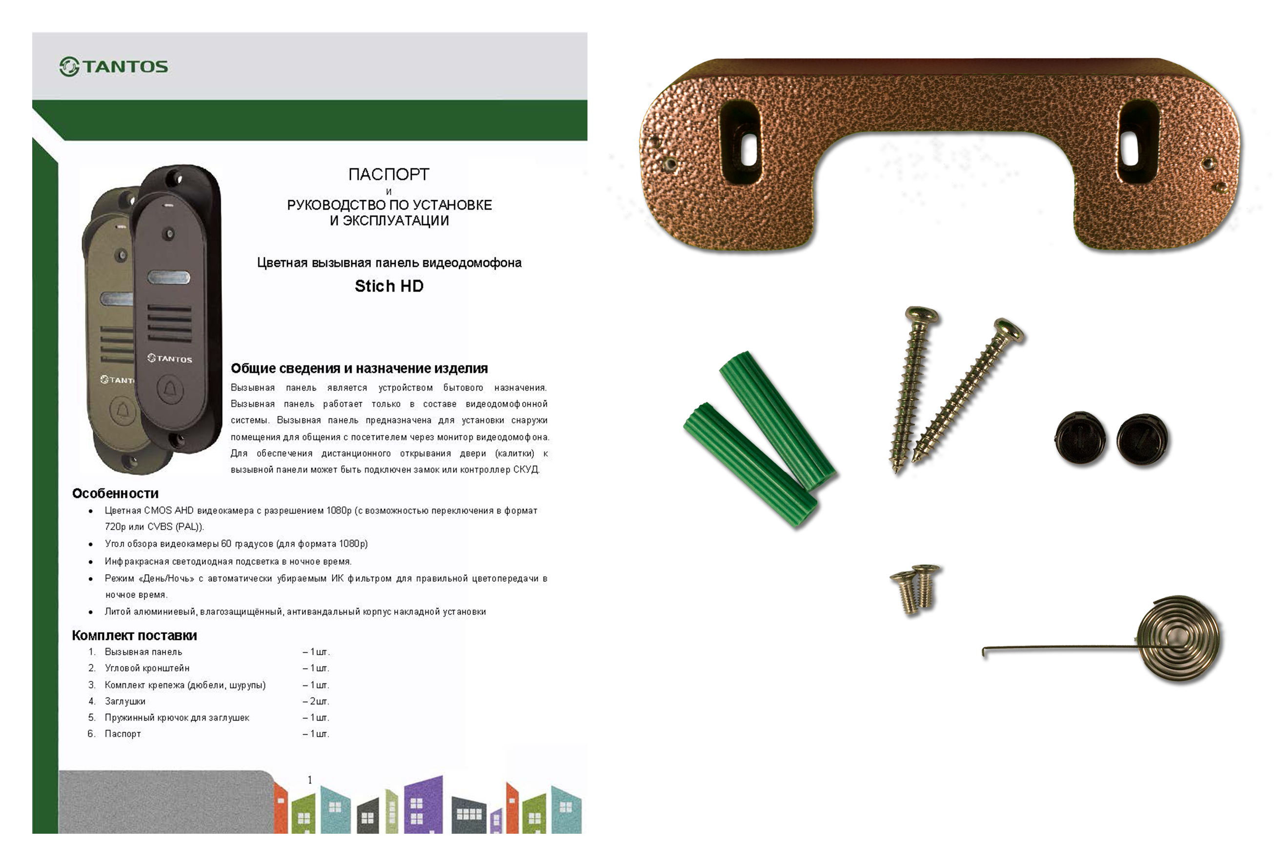 Tantos Stich (медь) HD 1 аб. Блок вызова в/домофона AHD1080p / 720p / CVBS (PAL);60 градусов;ИК св/диод. не менее 0,5м;12 В; -20 +60 С